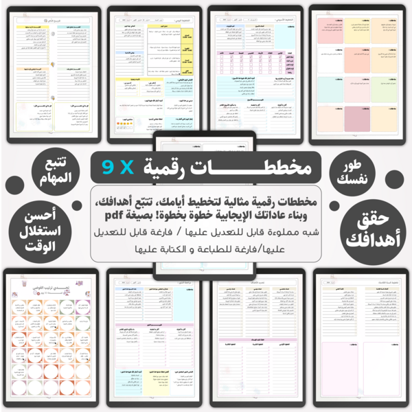 مخططات التنظيم الرقمية القابلة للتعديل | مخطط الأهداف والعادات الإيجابية | تنظيم الإنتاجية | تحميل رقمي