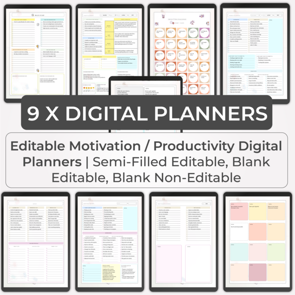 🌟 Editable Motivation / Productivity Digital Planners | Goal & Habit Tracker | Productivity Organizer | Plan You Day, Week And Month | Instant Download